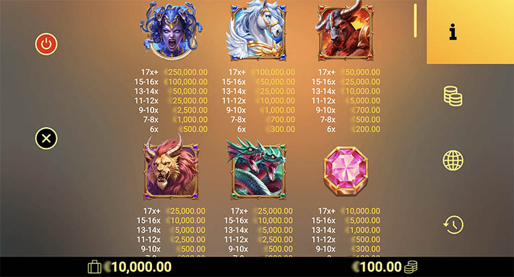 | Медуза Горгона | 500 | 1000 | 25 000 | 50 000 | 100 000 | 250 000 | |