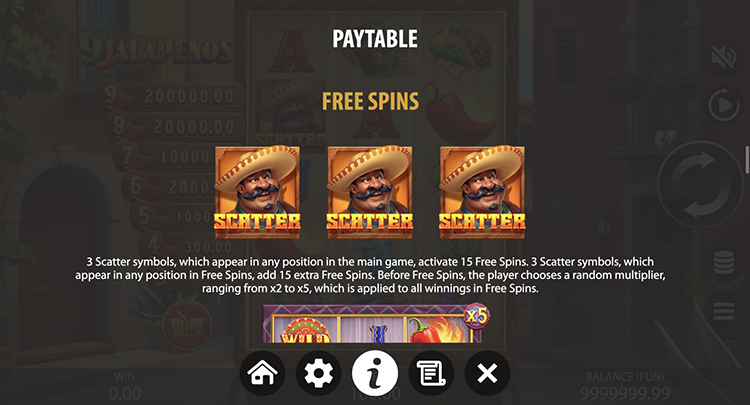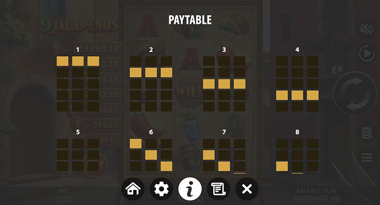 - Jalapeno Prize Ladder. Символы в виде перца выпадают на всех барабанах и оплачиваются в любых позициях. Коэффициенты отображаются рядом с игровым полем.