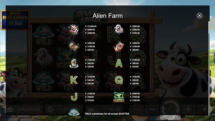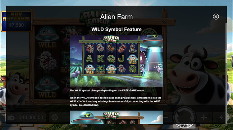 На ферму вот-вот случится вторжение. Зеленые пришельцы на космических кораблях ждут вечера, чтобы воплотить в жизнь свои коварные планы. Подробнее о функциях и технических характеристиках слота Alien Farm изложено ниже. Также на странице представлена официальная демоверсия от провайдера.