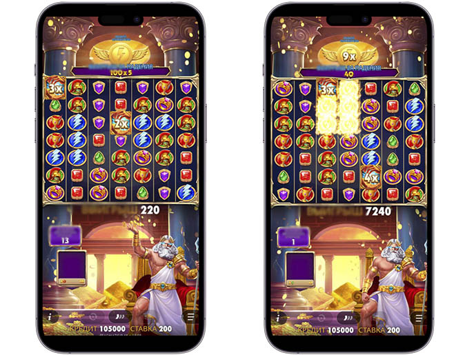 В предыдущих частях серии храм Зевса выступал фоном для игры. Теперь же пользователи оказываются внутри в окружении монет и драгоценных камней. Зевс восседает на золотом троне и продолжает метать молнии, добавляя на поле случайные множители.