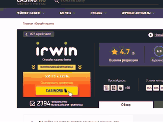 - Бесплатные вращения в Ирвин казино при депозите от 500 рублей