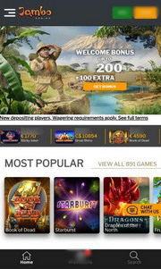 Скачать клиент Джамбо Казино на компьютер или ноутбук невозможно. Мобильные приложения для Android и iOS тоже отсутствуют. При входе на официальный сайт через браузер на смартфоне или планшете пользователь получает доступ ко всем играм и функциям. Мобильная версия хорошо проработана и адаптирована под экраны разных размеров.