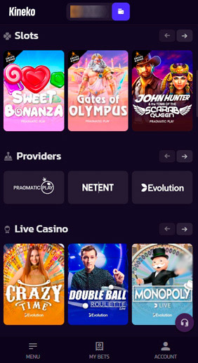 Пользователям онлайн-казино Кинеко доступна коллекция азартных развлечений из 900 игр. Оператор работает со многими топовыми провайдерами, среди которых NetEnt, Pragmatic Play, Habanero, Playson и другие.