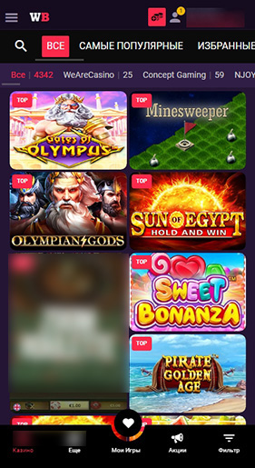 В каталоге азартных развлечение более 4300 слотов и других игр, и это не считая live-трансляций, собранных в отдельной вкладке. Навигация продумана и удобна. В самом верху расположен блок с топовыми автоматами, которые наиболее востребованы среди игроков.