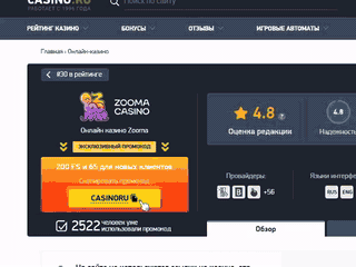 За время существования онлайн-казино Зума успело обзавестись неплохой репутацией. Анонимность и скорость выплат, наличие лицензионных автоматов способствуют повышению лояльности аудитории. Нарекания клиентов относятся только к отсутствию постоянных бонусов и ставок на спорт.