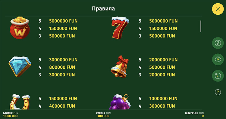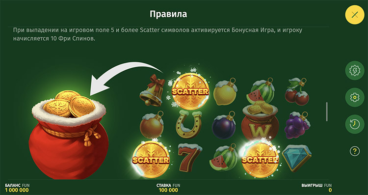 Рождественский слот с заснеженными фруктами вышел в декабре 2025 года. Он основан на классических механиках и предлагает лаконичный дизайн. Кроме выплат по комбинациям, пользователи могут получить мгновенный выигрыш с помощью денежных символов. Для подробного ознакомления с функциями слота Christmas Coin на странице представлена официальная демоверсия.