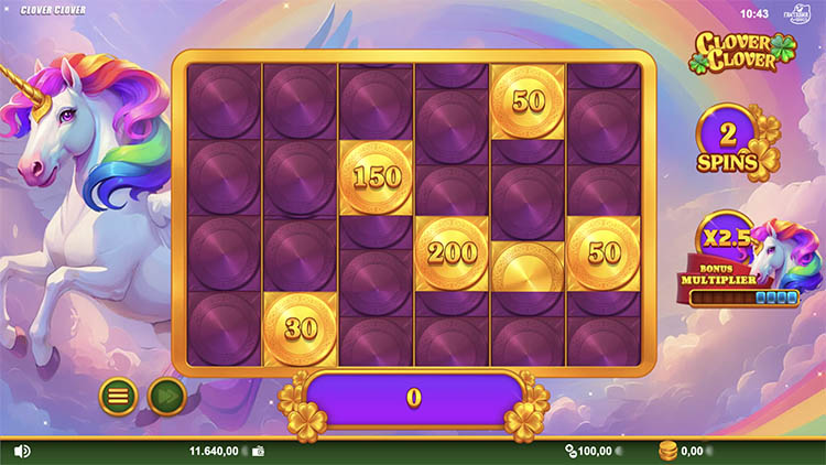 В основном режиме накапливаются множители для последующих бонусов. Когда символ сбора выпадает без монет, он увеличивает мультипликатор для колеса Фортуны или мини-игры с мгновенными выплатами. При выпадении единорогов-скаттеров постепенно заполняется счетчик множителя для фриспинов.