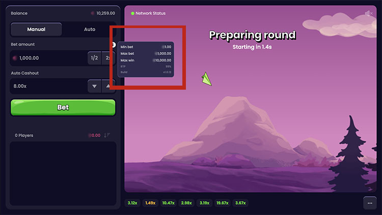 - На размещение ставки дается 4 секунды в перерывах между раундами.