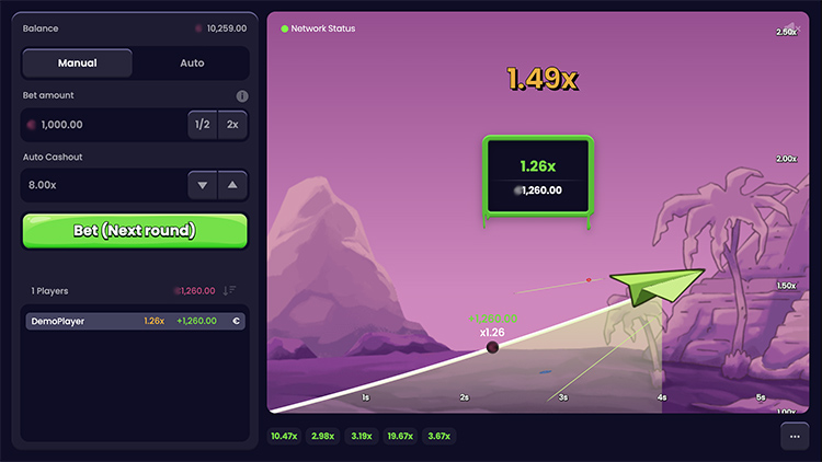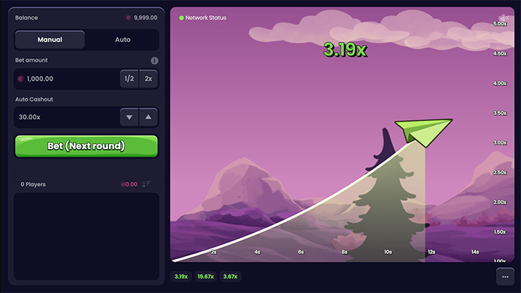 Слот вышел в октябре 2025 года. Он основан на популярной механике краш-игр. Пользователи делают ставку и наблюдают за полетом бумажного самолета. Одновременно с этим растет множитель выплат — необходимо забрать деньги до того, как он сгорит. На странице доступна официальная демоверсия с описанием технических характеристик слота Crash.