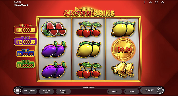 Это слот в классическом стиле с простыми правилами. Комбинации выпадают на фиксированных линиях. После каждой выплаты можно запустить риск-игру. Также предусмотрен бонус с фиксированными джекпотами. На странице представлена официальная демоверсия слота Crown Coins с подробным описанием функций.