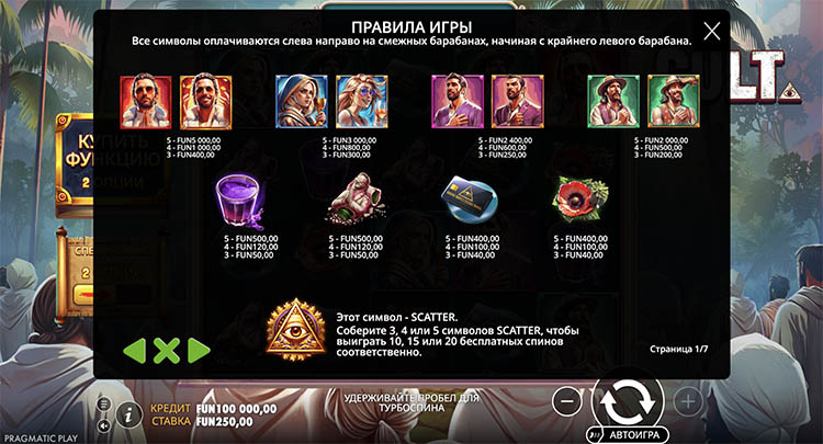 Провайдер выходит за рамки привычных для себя сюжетов. Слот CULT. посвящен истории о секте, которая скрывает свои пороки за ритуалами и молитвами. Анимированные эффекты подчеркивают двуличие культа: когда символы персонажей формируют комбинации, отображается их настоящее лицо. Редакция подготовила подробное описание функций и добавила официальную демоверсию для бесплатного запуска.