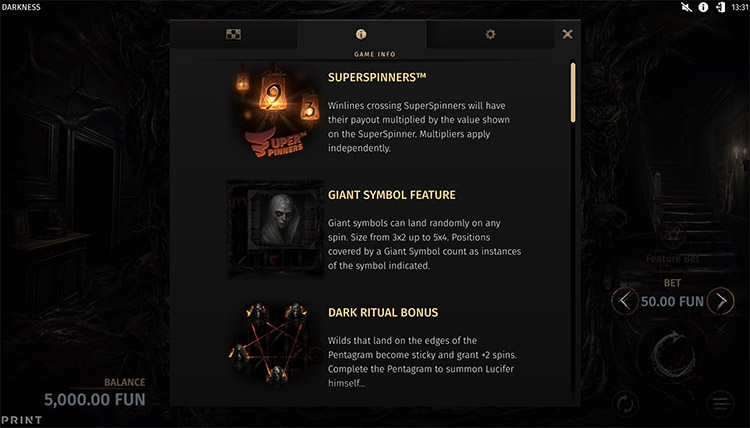 Слот разработан совместно с провайдером Silver Bullet. Это мрачный игровой автомат с элементами хоррора, который вышел накануне Хэллоиуна. Пользователь оказываются в зловещем доме с призраками и мистическими порталами. Редакция Casino.ru добавила слот Darkness в деморежиме и подготовила обзор функций.