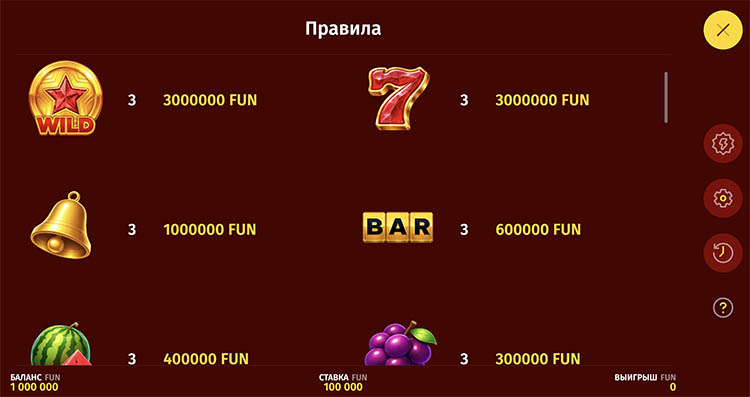 | Семерка, Звезда (Wild) | 3 000 000 | |