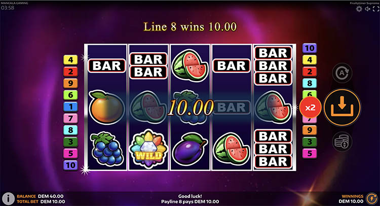 В апреле 2026 года провайдер выпустил слот в классическом стиле. В нем используются игровое поле на 5 барабанов и узнаваемые фруктовые символы. Пользователи могут самостоятельно управлять уровнем риска, настраивая количество активных линий. Это также влияет на размер ставки. Слот FruityLiner Supreme в деморежиме доступен на странице для бесплатной игры и безопасного изучения функций.