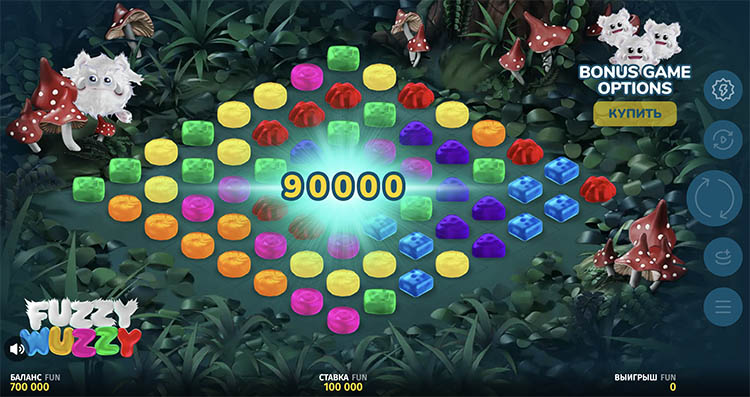 - Вайлды с множителем. Символ вуззи участвует в комбинациях, поглощает символы по диагонали и получает увеличенный коэффициент. Он применяется к последующим кластерам.