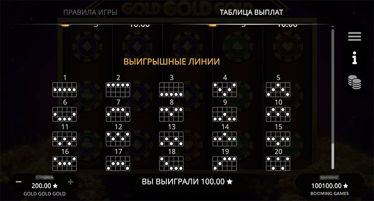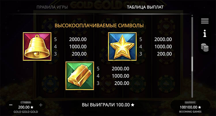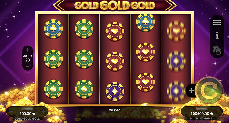 Провайдер выпустил слот о казино. На барабанах выпадают разноцветные фишки и символы с золотыми слитками. Слот Gold Gold Gold подходит для игры с любым банкроллом за счет настраиваемых активных линий. На странице представлена официальная демоверсия с описанием правил и технических характеристик.
