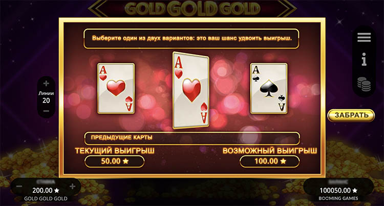 Это 5-барабанный игровой автомат, в котором можно выбрать от 1 до 20 линий выплат. Комбинации начинаются с левого края поля и состоят минимум из 3 одинаковых символов. После каждой выплаты можно запустить риск-игру с выбором цвета карты. У нее есть несколько особенностей: