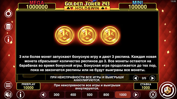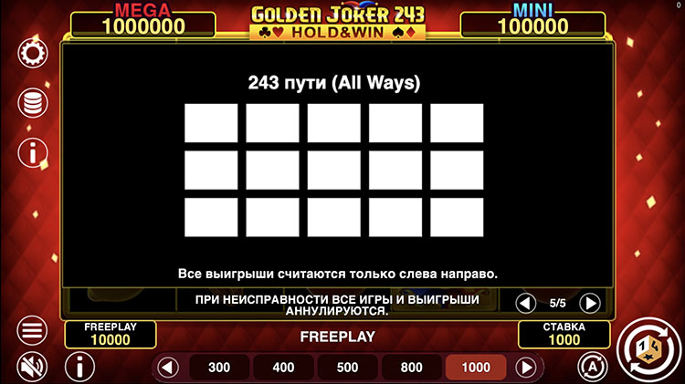 Провайдер продолжает развивать серию классических игровых автоматов. Он выпустил уже несколько слотов с похожим дизайном, но с измененными конфигурациями. В этот раз представлена версия с 243 активными линиями и бонусной игрой с джекпотом. Слот Golden Joker 243: Hold and Win в деморежиме доступен на странице.