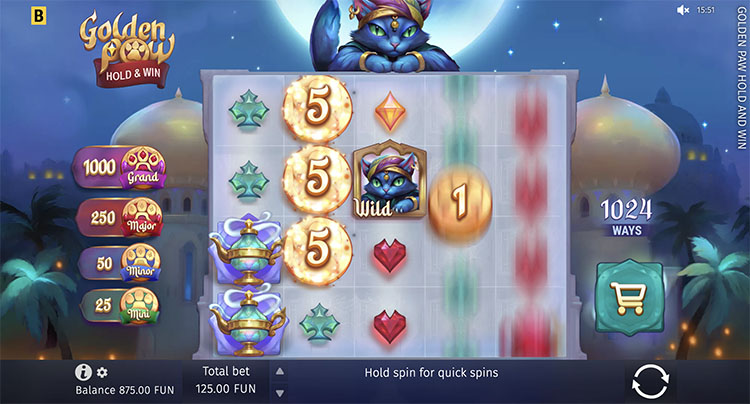 Провайдер знакомит игроков с харизматичным зеленоглазым котом, способным исполнять желания. Слот вдохновлен известным сюжетом арабских сказок о Джинне и волшебной лампе. Действие разворачивается на фоне ночного города, освещенного лунным светом. На поле, кроме монет и драгоценных камней, встречаются шерстяные клубки и колокольчики — любимые игрушки главного персонажа. Пользователи могут детальнее изучить слот Golden Paw Hold & Win на Casino.ru. На странице представлена его официальная демоверсия.