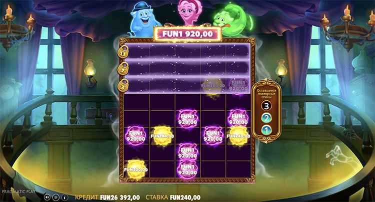 Это 5-барабанный игровой автомат с фиксированными линиями выплат. Комбинации считаются слева направо. Вверху поля находятся сферы, которые собирают скаттеры соответствующего цвета и заполняются призраками. Когда хотя бы один шар достигнет предела, запустится бонус с механикой Hold and Win и особыми модификаторами: