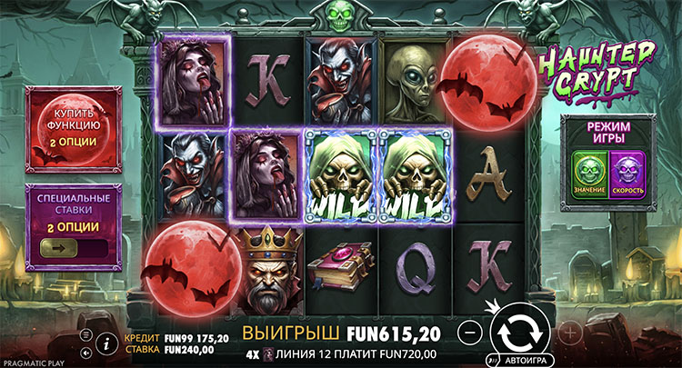 Игровой автомат на тему ужасов был выпущен в марте 2026 года. Он предлагает пользователям вариативный геймплей с возможностью выбора режима вращений, а также двумя типами суперспинов с гарантированными множителями. Бонусные механики слота Haunted Crypt основаны на применении вайлдов.
