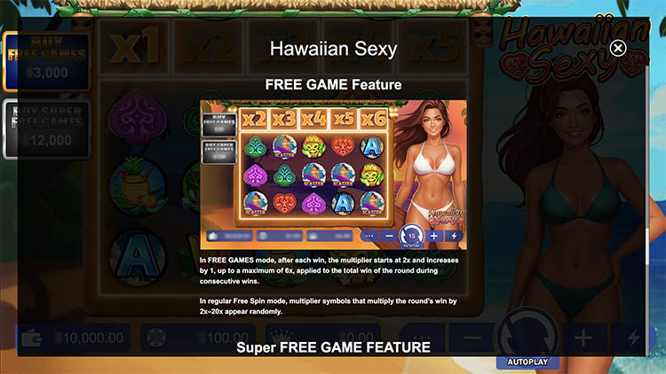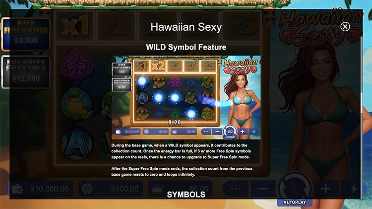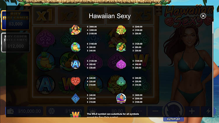 Слот создает курортную атмосферу. Он переносит пользователя на берега солнечных Гавайских островов. Действия игры разворачиваются в дневное время, а при активации фриспинов горизонт освещает закат. Официальная демоверсия слота Hawaiian Sexy представлена на странице вместе с описанием технических характеристик.