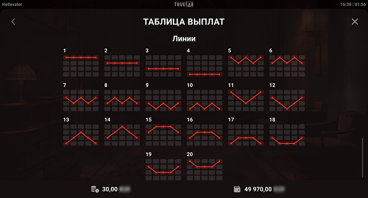 У автомата 5 барабанов и 20 фиксированных линий. Комбинации начинаются с левого края поля. Провайдер добавил несколько спецсимволов: