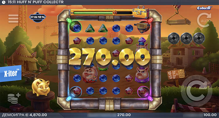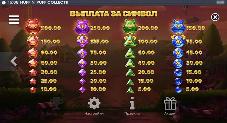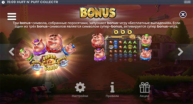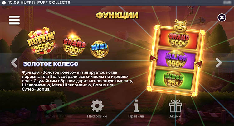 Слот был создан в апреле 2026 года. В его основе — сюжет сказки «Три поросенка» и брендовая механика с функцией сбора. Пользователям стоит протестировать слот Huff N’ Puff CollectR в деморежиме, чтобы изучить бонусные функции и принцип действия спецсимволов.
