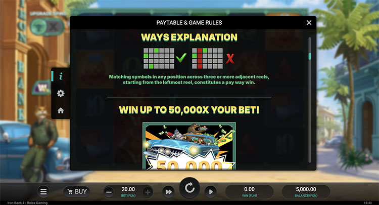 Провайдер выпустил долгожданное продолжение слота об ограблении банка. Игровой автомат сохраняет узнаваемый кубинский колорит. Как и первая часть, слот Iron Bank 2 создан совместно со стриминговым сообществом Casino Grounds. Пользователям доступны несколько режимов игры на выбор и огромный потенциал выигрыша — х50 000.