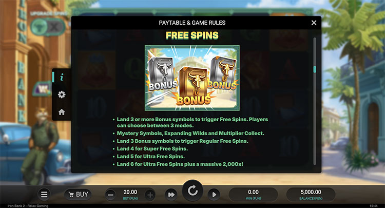 Для каждого бонуса существуют три версии — «Стандарт», «Супер» и «Ультра». Она зависит от количества выпавших скаттеров и определяет особенности раунда. Например, в суперверсии Expanding Wilds расширяющиеся вайлды выпадают на 4 барабанах. В ультрабонусе Multiplier Collect в последнем вращении гарантированно появляется блуждающий дикий символ. Если игроку повезет дождаться выпадения 6 скаттеров, запустится максимальная версия фриспинов вместе с моментальной выплатой в размере х2000.
