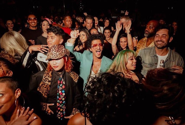 Бруно Марс среди гостей его бара The Pinky Ring, который относится к музыкальной резиденции