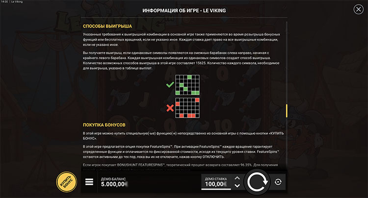 Провайдер использует разные механики выплат в рамках серии. Например, в Le Bandit выигрыши начислялись за кластеры, а в Le Pharaoh предусмотрено 19 активных линий. В этот раз количество линий увеличилось до 15 625. Они считаются слева направо.