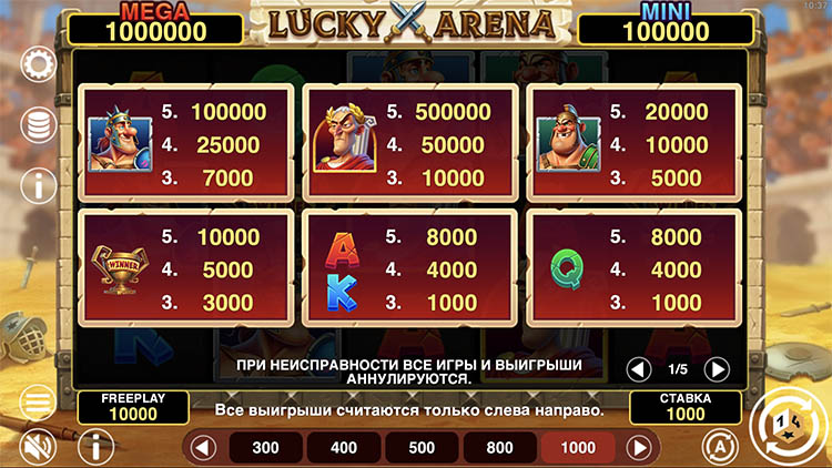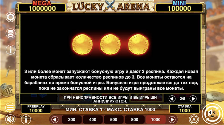 Игровой автомат посвящен истории Древнего Рима. Действие происходит на арене амфитеатра. На ней сражаются давние соперники — лучшие гладиаторы империи. Цезарь наблюдает за битвой и готовится назвать победителя. Официальная демоверсия слота Lucky Arena Hold and Win доступна на странице вместе с описанием бонусных функций и технических характеристик.