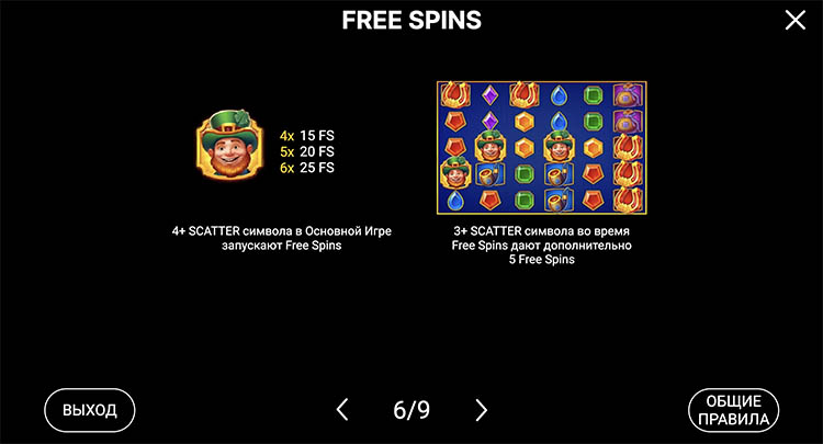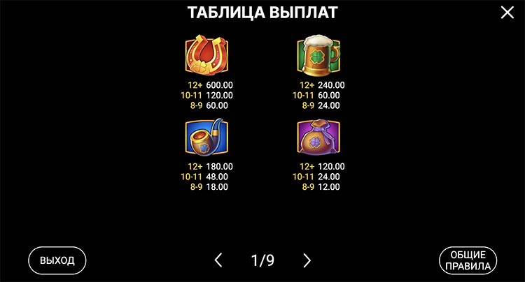 - Множители. Во время случайного вращения лепрекон может добавить монету с мультипликатором от х2 до х1000. Его значение применяется ко всем выигрышным комбинациям. Несколько множителей суммируются между собой.