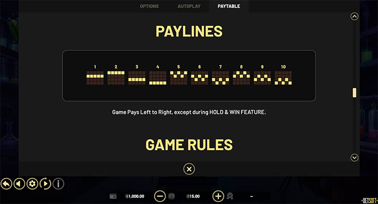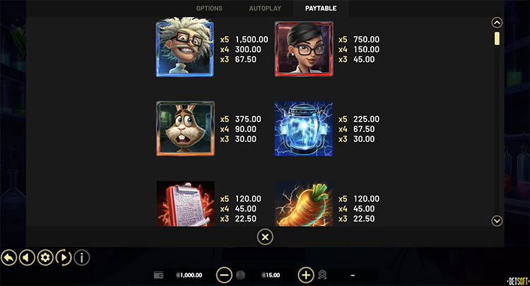 Колбы выполняют функцию скаттеров и денежных символов. Они выпадают со случайными номиналами, которые оплачиваются в бонусном раунде. Мини-игра запускается при выпадении 6 и более колб.