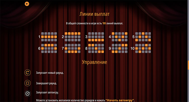 Это 5-барабанный игровой автомат с фиксированными линиями выплат. Комбинации начинаются с левого края. Также встречаются спецсимволы: