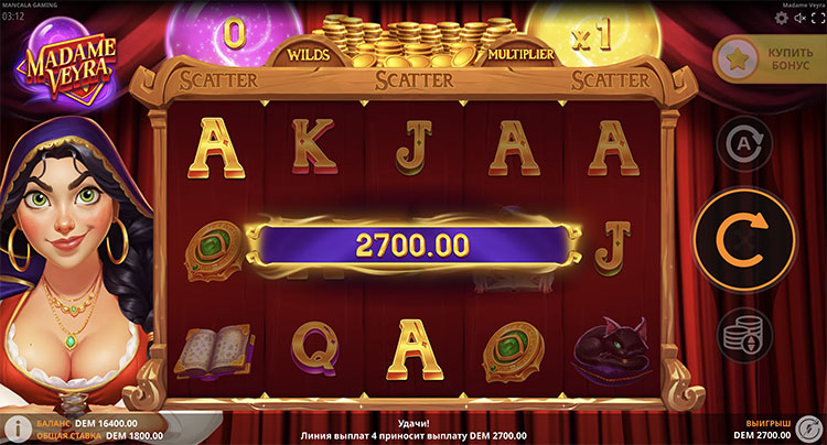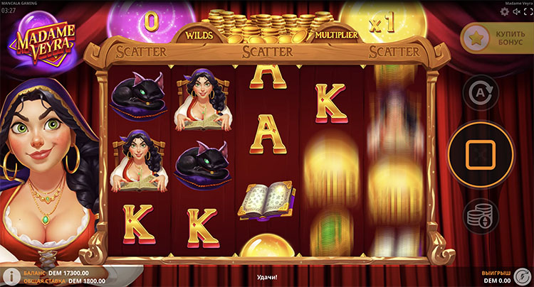 Провайдер выпустил слот на магическую тематику. Действие происходит в шатре гадалки. Рядом с ней находится черный кот-фамильяр. На поле выпадают символы с волшебными шарами, амулетами и древними книгами. Описание всех функций и технических характеристик слота Madame Veyra доступно на странице.