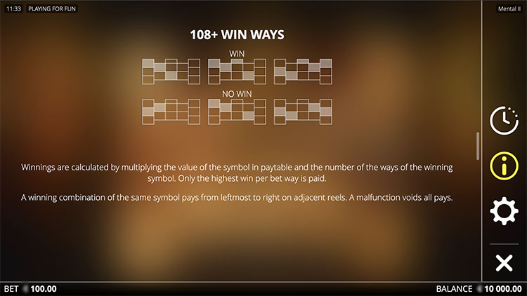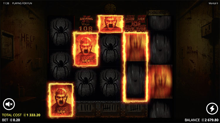 Символ xMental в отмеченной ячейке запускает повторное вращение, во время которого загорается все поле. Заблокированные позиции открываются и выдают спецсимволы.