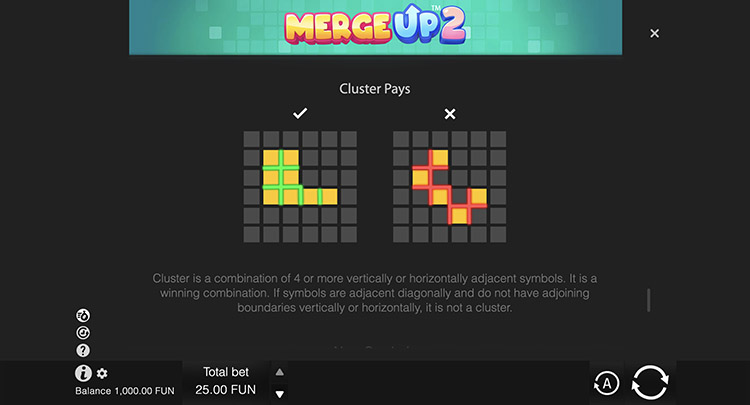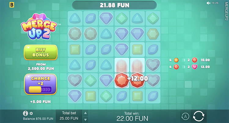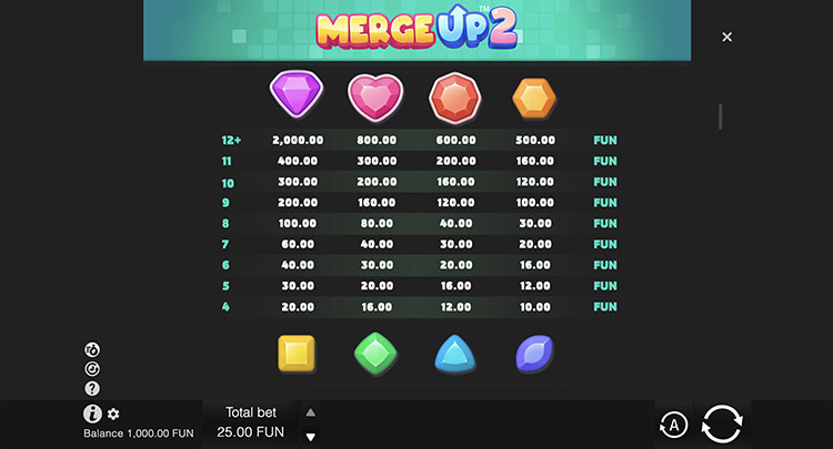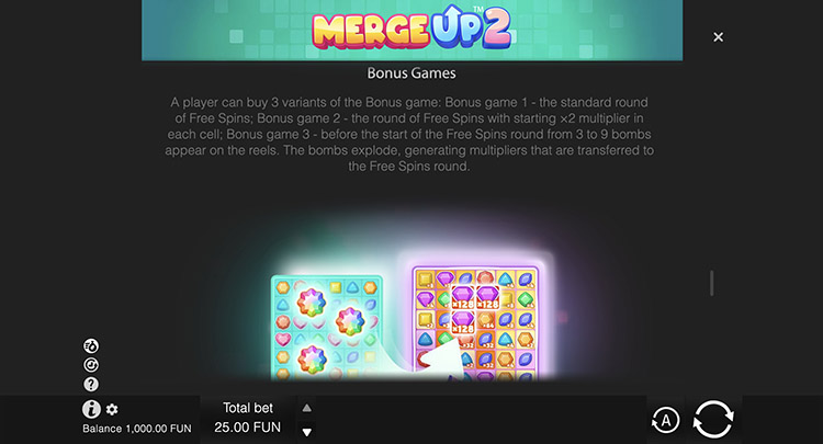 Слот вдохновлен мобильными играми «три в ряд». На поле выпадают изображения разноцветные кристаллов, которые объединяются при формировании выигрышной комбинации. Слот Merge Up 2 разработан совместно с сервисом Strmlytics, который анализирует стримы и выявляет ключевые тренды для бизнеса. Официальная демоверсия вместе с описанием бонусных функций представлена на странице.