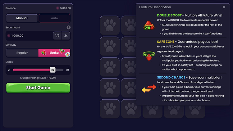 - Safe Zone — получение гарантированной выплаты, даже если позже попадется мина.