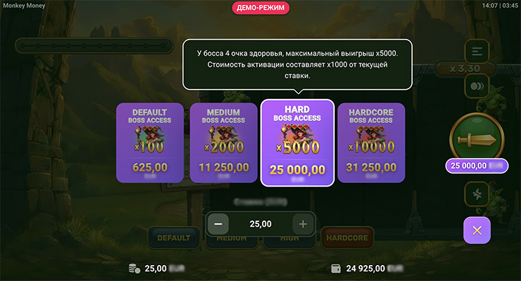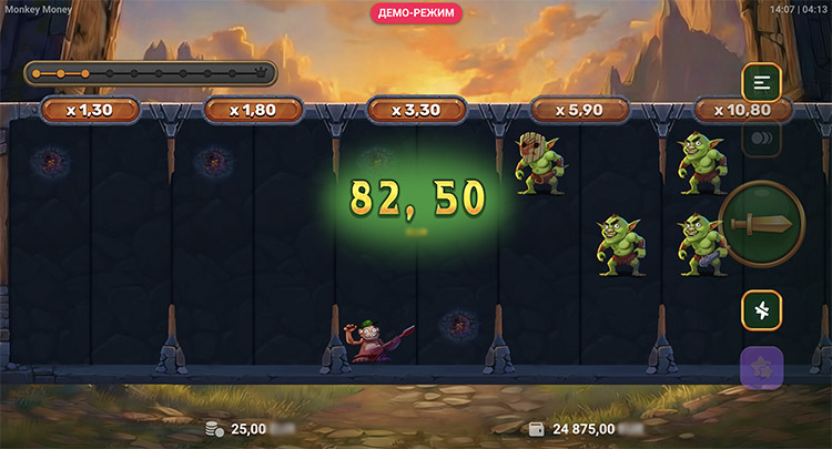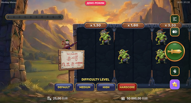 Это пошаговая игра с нарастающим потенциалом выплат. Главный герой перемещается по комнатам и сражается с гоблинами. Если удается одолеть противников, он проходит дальше и увеличивает общий выигрыш. Деньги можно забрать в любой момент после удачного сражения. Доступно несколько режимов сложности: