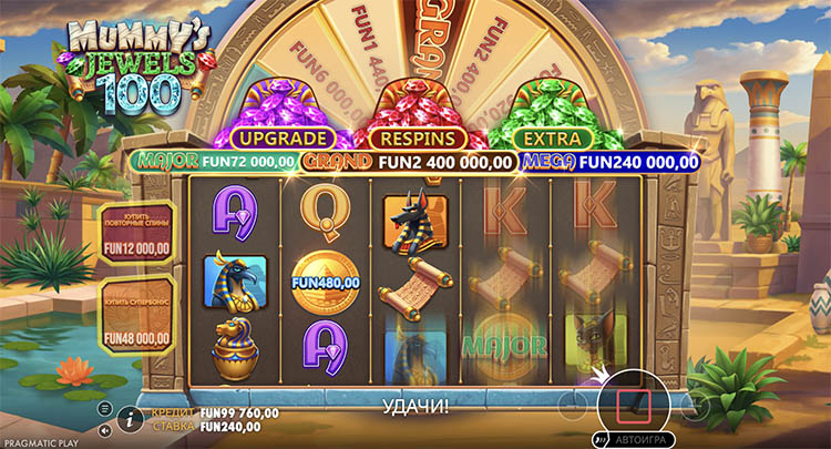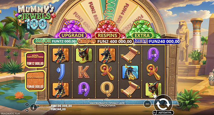 Слот посвящен культуре Древнего Египта. Действие разворачивается на фоне пруда в окружении пальм и статуй. Оформление выполнено в мультипликационном стиле. Главная особенность слота Mummy’s Jewel 100 — накопительные бонусы, в которых разыгрываются мгновенные выплаты и джекпоты. На странице доступно подробное описание функций и технических характеристик.