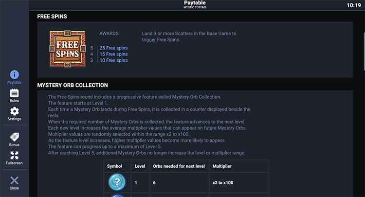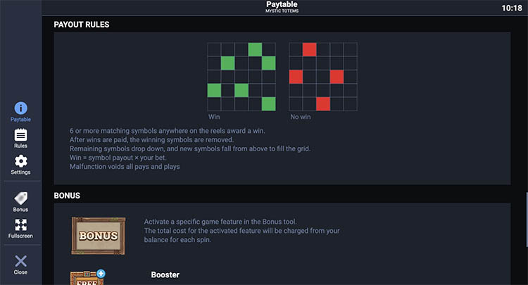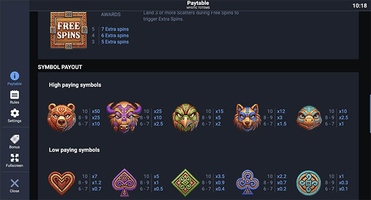 Провайдер выпустил слот о духах природы. Они изображены в виде масок медведей, орлов, буйволов и других животных. Основная фишка слота Mystic Totems — это символы-множители, которые выпадают во всех режимах игры и повышают шансы на крупные выплаты. Официальная демоверсия представлена на странице вместе с подробным описанием характеристик.