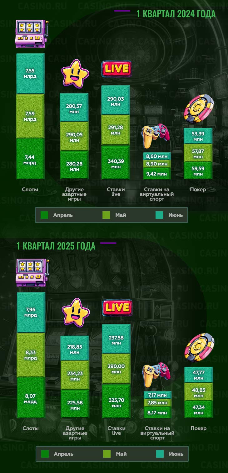 Обзор рынка онлайн-казино — данные за апрель-июнь 2025 года в инфографике