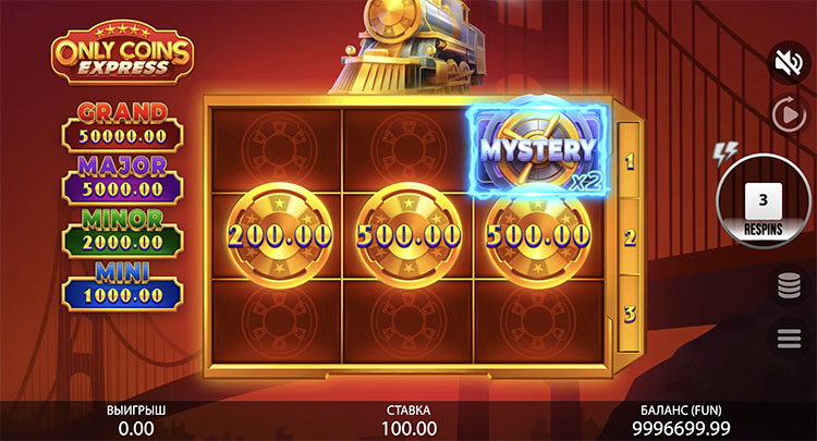 Когда в базовой игре выпадает липкий таинственный символ, он остается на поле до тех пор, пока не запустится бонус. Затем монета принимает значение случайного джекпота, который в 10, 20 или 50 раз превышает ставку.