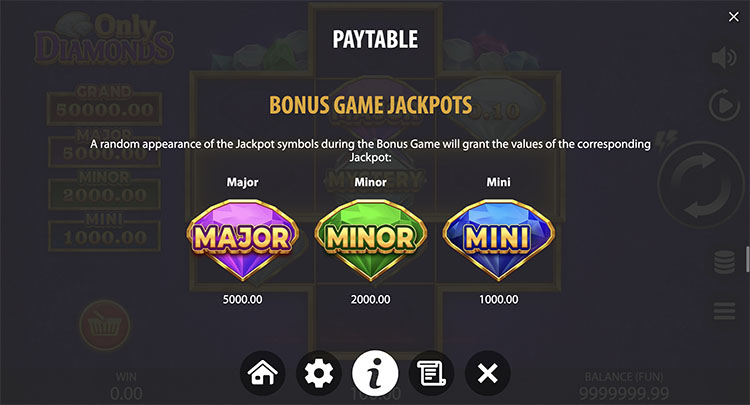 Слот вышел в феврале 2026 года. В нем не используются фиксированные линии, а выплаты можно получить только в бонус-игре. Официальная демоверсия слота Only Diamonds вместе с описанием технических характеристик представлена на странице.