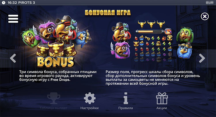 Серия о птицах-бандитах началась в 2023 году. С тех пор главные герои успели побывать в морском путешествии и отправиться в доисторический период к динозаврам. В третьей части они попали на Дикий Запад и примерили на себя роль ковбоев. Подробное описание характеристик и функций слота Pirots 3 — на странице.