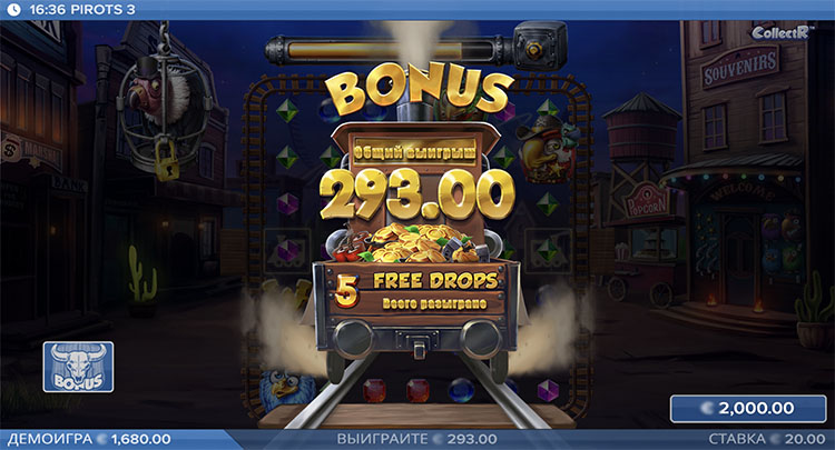 В основном режиме и фриспинах над игровым полем находится прогрессивная шкала. Она заполняется при формировании комбинаций. В конце открывается сейф, который активирует несколько случайных бустеров.