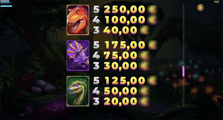 Игровой автомат посвящен эпохе динозавров. Он переносит пользователей в густые джунгли с необычными растениями. На барабанах выпадают символы с тираннозаврами, трицератопсами и другими видами. В базовой игре есть несколько особенностей: