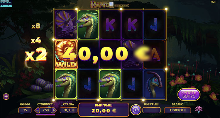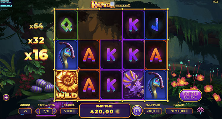 Слот вышел в 2021 году и стал первой презентацией фирменной технологии множителей провайдера. После каждого каскадного вращения мультипликатор удваивается без ограничений. Официальная демоверсия слота Raptor DoubleMax доступна на странице для бесплатного запуска.